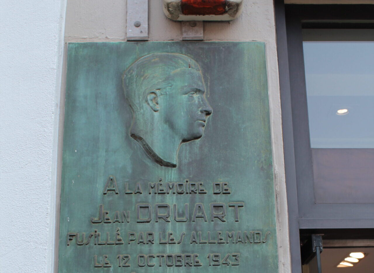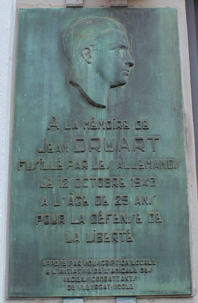 De bronzen plaat gewijd aan Jean Druart hangt in de Waterloosesteenweg 722, waar zijn vader een apotheek had. Jean Druart werkte er en woonde er op de verdieping. De plaat bevat het portret van de verzetsstrijder in profiel, van de hand van beeldhouwer en schilder Maurice Jansegers.