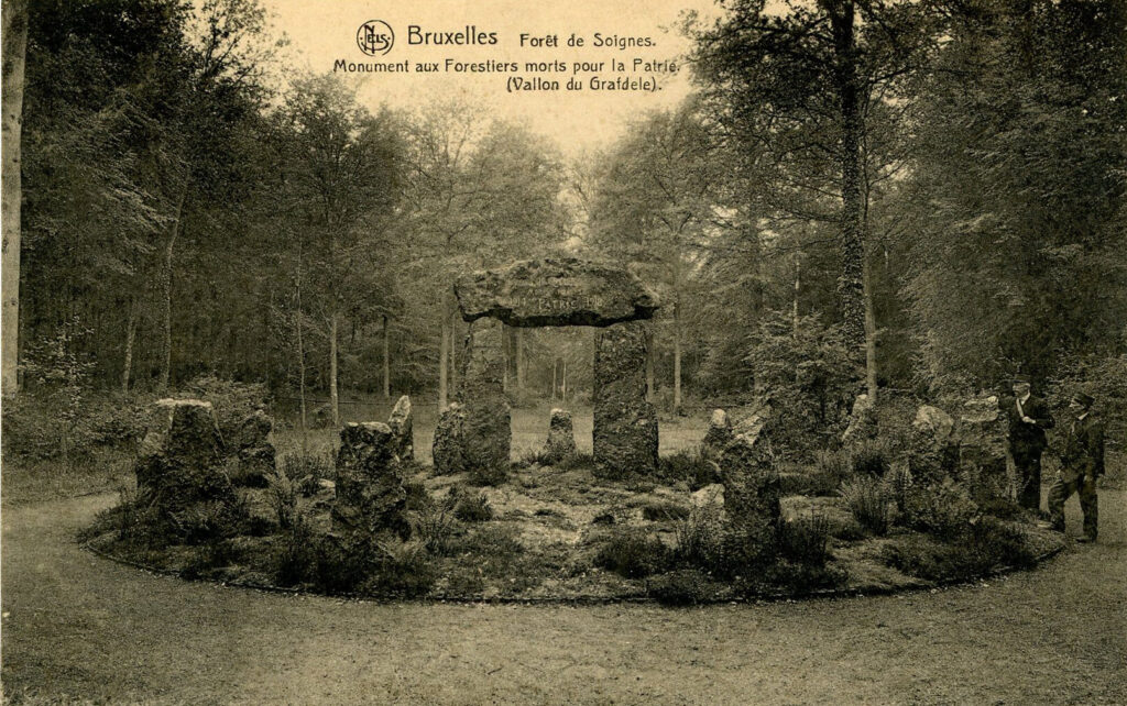 Le monument en hommage aux forestiers se découvre au détour d’un chemin dans la Forêt de Soignes. Inspiré des traditions funéraires celtiques, il prend la forme d’un cromlech, composé de poudingue de Wéris, un béton naturel.