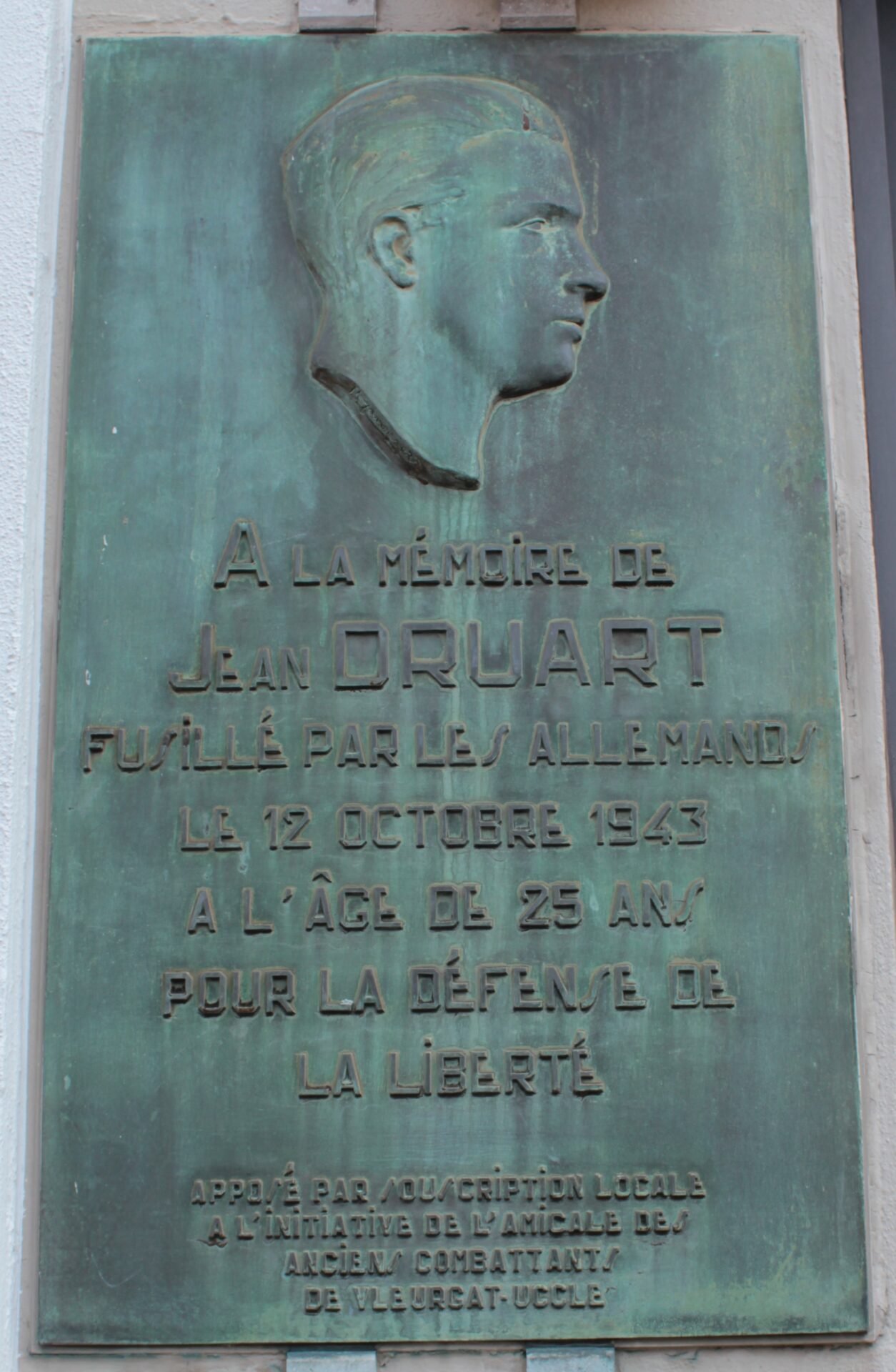 La plaque en bronze dédiée à Jean Druart est située au 722 chaussée de Waterloo, là où son père tenait une pharmacie. Jean Druart y travaillait et résidait à l’étage. La plaque porte le portrait du résistant, réalisé de profil par le sculpteur et peintre Maurice Jansegers.